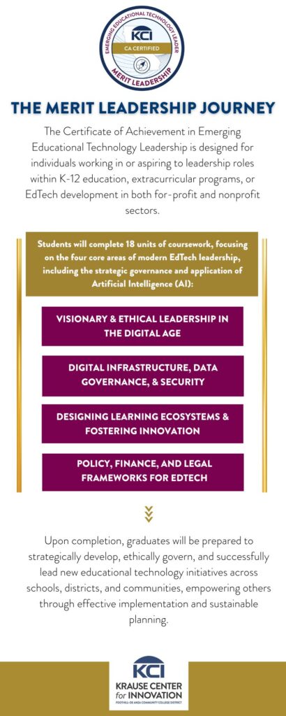 - Outcome: 18 Quarter Unit Program and a Certificate in Emerging Education Technology Leadership