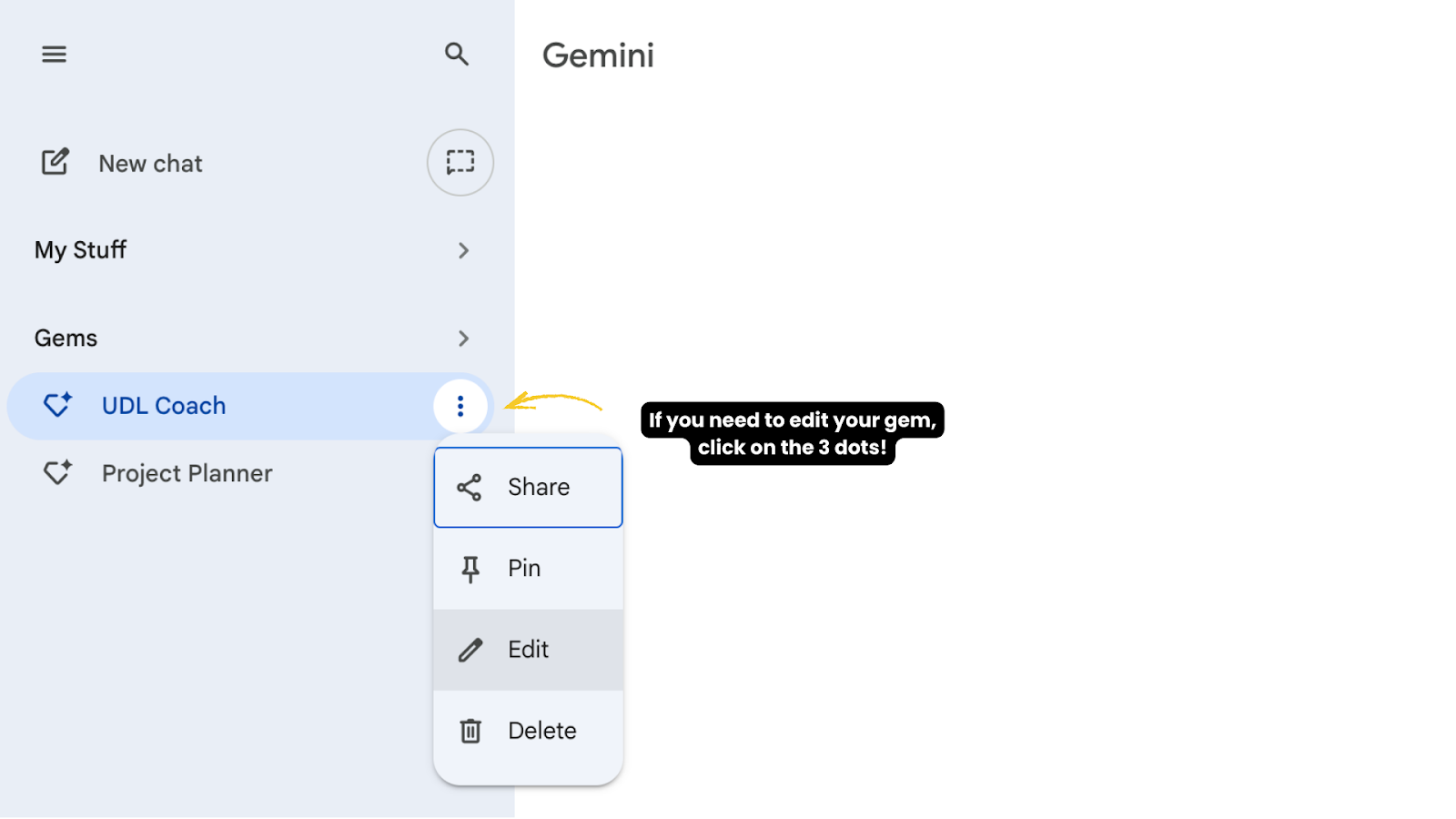 Gemini will now show your Gem anytime you need it. You can edit it and continue to refine as you use it.